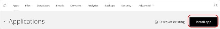 The Apps tab is where you can install applications. To do this, click Install app, select the settings you want, and then click Install: