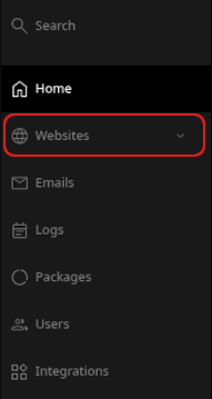 When the control panel appears, in the left sidebar, click Websites: