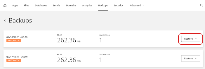 TipFor more information about how to manage backups, please see Managing backups in the Hosting Panel.