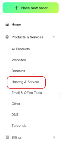 In the left sidebar, under Products & Services, click Hosting & Servers: